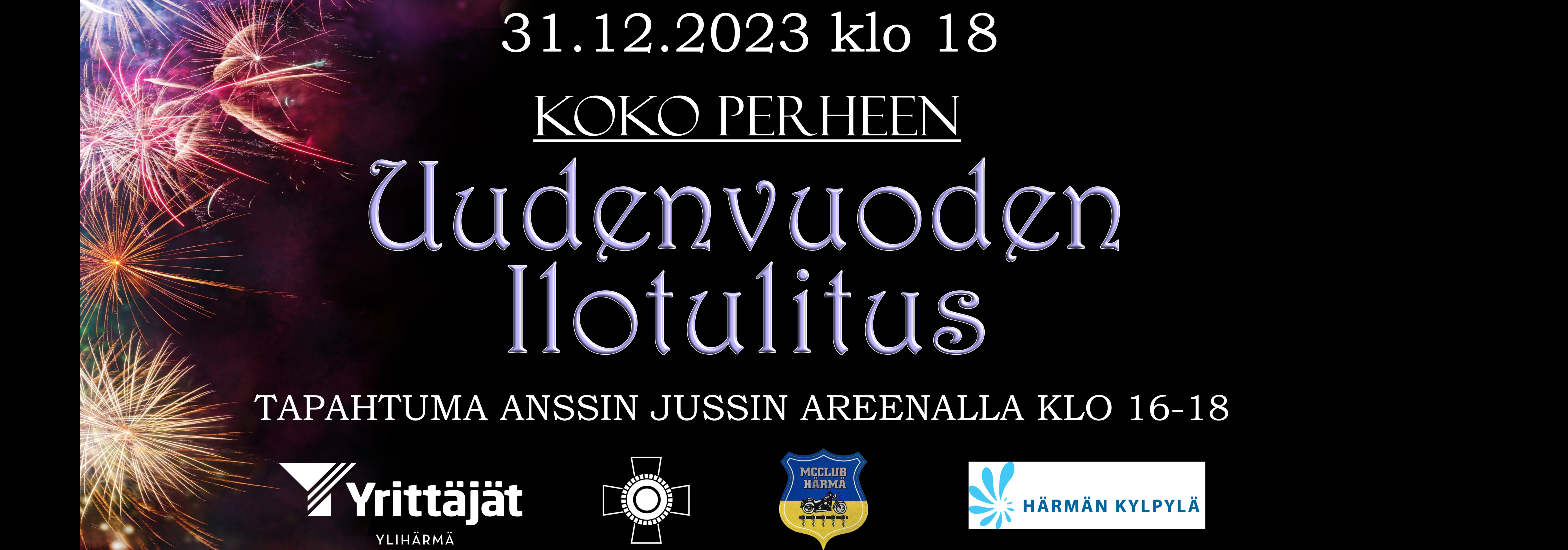 "fi": "Koko perheen Uudenvuoden Ilotulitus Ylihärmässä 31.12.2023 klo 18",