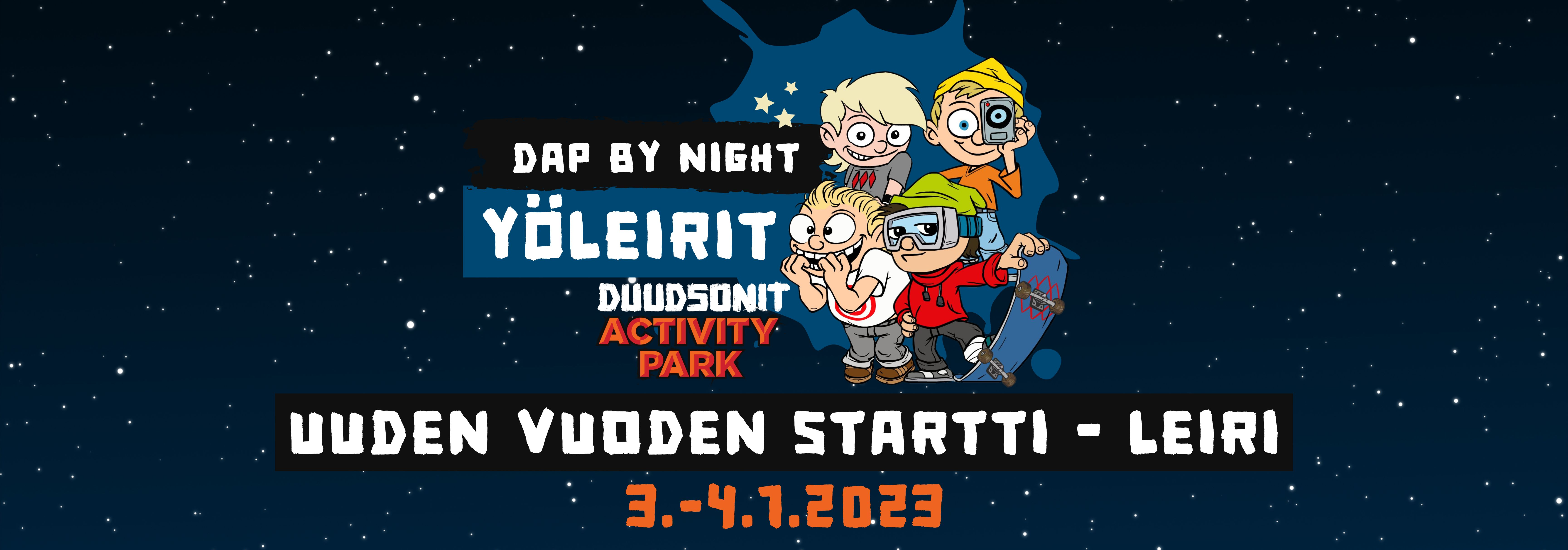 "fi": "Vuoden ensimmäinen yöleiri saapuu Seinäjoen Duudsonit Activity Parkkiin 3.-4.1.2024!",