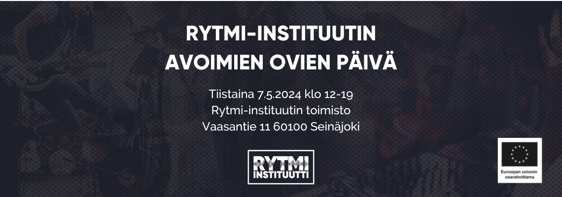 "fi": "<p>Lämpimästi tervetuloa tutustumaan Rytmi-instituutin toimintaan tiistaina 7. toukokuuta! Avoimien ovien päivä järjestetään Rytmi-instituutin toimistossa Rytmikorjaamolla (0. kerros) osoitteessa Vaasantie 11, 60100 Seinäjoki.</p>\n<p></p>\n<p>Rytmi-instituutti on populaarimusiikin asiantuntijaorganisaatio, jonka tehtävänä on edistää elävää ja luovaa musiikkikulttuuria Suomessa, harjoittaa populaarimusiikkiin liittyvää koulutus-, tutkimus-, julkaisu- ja tiedotustoimintaa ja ylläpitää alan kotimaisia ja kansainvälisiä suhteita. Lue lisää osoitteessa: <a href=\"www.rytmi-instituutti.fi\">www.rytmi-instituutti.fi</a> </p>\n<p></p>\n<p>Avoimien ovien päivänä pääset tutustumaan Rytmi-instituutin toimintaan ja henkilökuntaan sekä verkostoitumaan muiden alueen toimijoiden kanssa. Tilaisuudessa esitellään myös uusi Euroopan unionin osarahoittama, Rytmi-instituutin ja Kaakkois-Suomen ammattikorkeakoulun luotsaama Klusteri-hanke, jonka tarkoituksena on koota yhteen (populaari)musiikin ja siihen liittyvien muiden sisältötuotantoalojen eri toimijoita, tekijöitä ja päättäjiä. Klusteri-hanke pyrkii paitsi tarkastelemaan musiikkialaa ja sen sektoreiden toimintaa kokonaisuutena, tunnistamaan kehityskohteita, testaamaan sekä luomaan uusia ratkaisuja alan kehitykselle. Hankkeen tavoitteena on lisätä synergiaa sekä keskustelua alan eri toimijoiden välillä sekä helpottaa alalle työllistymistä avaamalla mm. tietoperusteisen, osallistavan ja avoimen viestintäkanavan, joka tarjoaa väylän tekijöiden löytämiseksi eri projekteihin ja työtehtäviin. </p>\n<p></p>\n<p>Avoimien ovien päivässä vierailijoiden on mahdollista tuoda esiin ajatuksia alaan ja sen toimintatapoihin liittyvistä kehitysideoista. </p>\n<p></p>\n<p><strong>Aikataulut ja ilmoittautuminen</strong></p>\n<p></p>\n<p>Huomioiden musiikkialan toimijoiden vaihtelevat työajat, Rytmi-instituutti järjestää avoimien ovien päivänä kolme ohjattua tilaisuutta, joiden aikana on mahdollista tutustua Rytmi-instituutin toimintaan sekä kuulla tietoa uudesta hankkeesta. Valitse itsellesi kellonajoista sopivin ja ilmoittaudu mukaan <a href=\"https://forms.gle/qUfSyh4Qwy1JkYYc6\">täällä</a>. </p>\n<p></p>\n<p>Ohjatut tilaisuudet järjestetään tiistaina 7.5. alkaen klo 12:00, 15:30 ja 17:30.</p>\n<p></p>\n<p>Lisätietoja:</p>\n<p>toimisto@rytmi-instituutti.fi</p>\n<p>040 733 4746 (klo 10-15 arkisin)</p>\n",