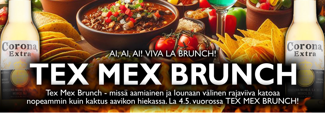 "fi": "Tex Mex Brunch - missä aamiaisen ja lounaan välinen rajaviiva katoaa nopeammin kuin kaktus aavikon hiekassa.",