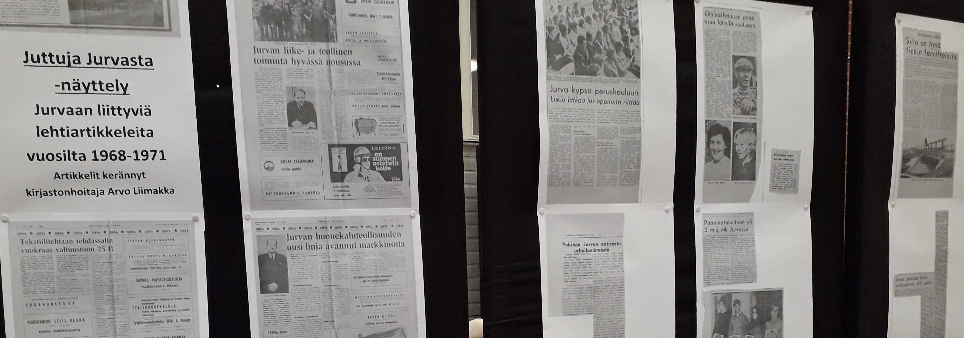 "fi": "<p>Juttuja Jurvasta -näyttely on esillä Jurvan kirjastossa 23.1.-27.2.2026</p>\n<p>Jurvaan liittyviä lehtiartikkeleita vuosilta 1968-1971 </p>\n<p>Artikkelit on kerännyt kirjastonhoitaja Arvo Liimakka</p>\n<p>Tervetuloa tutustumaan!</p>\n",